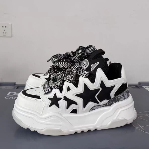 남성용 및 여성용 캐주얼 워킹 스타일 빵 신발 5 각형 별 두꺼운 밑창 통기성 디자인 스포츠 용 다목적