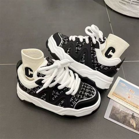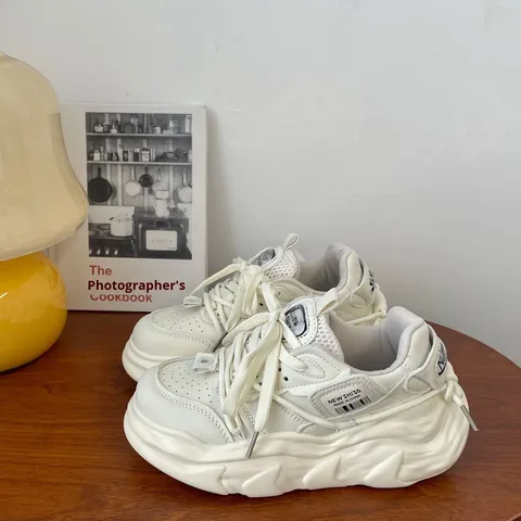 2024 하라주쿠 스타일 INS 스포츠 스니커즈 여성용 캐주얼 아빠 신발 레이스 업 두꺼운 밑창 높이 증가 겨울 스포츠 신발