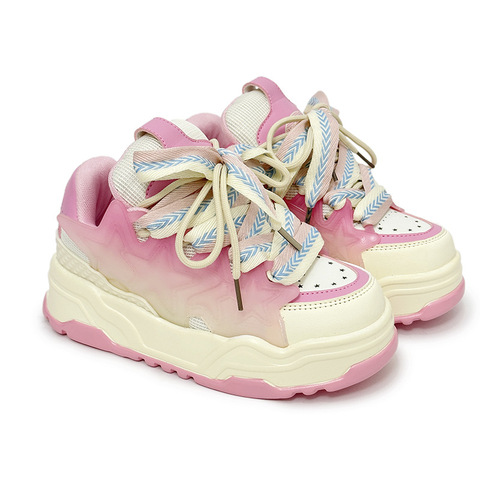 SkyLangte 트렌디 한 그라디언트 메쉬 워킹 스타일 남성 여성 스니커즈 소가죽 레이스업 두꺼운 밑창 높이 만다린 신발