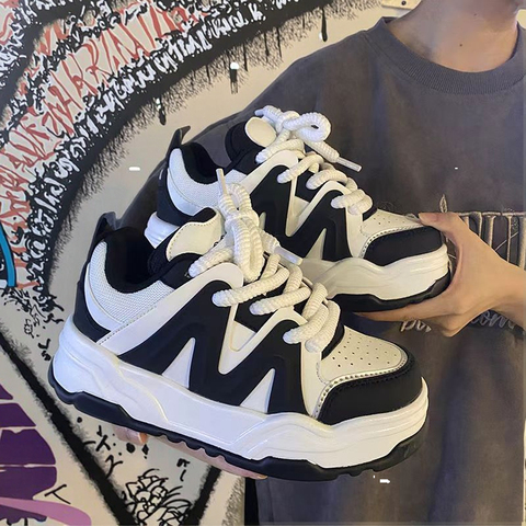 2024 남자 하라주쿠 스타일 스케이트 보드 신발 캐주얼 아빠 운동화 레이스 업 클로저 두꺼운 밑창 높이 증가 로퍼 PU 어퍼
